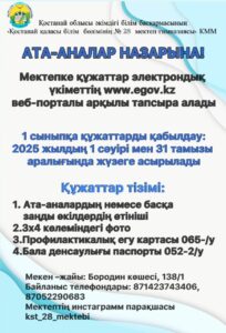 Құрметті, ата-аналар! 1 сыныпқа құжаттарды қабылдау ережелеріне өзгерістер енгізілгенін хабарлаймыз. 2025-2026 оқу...